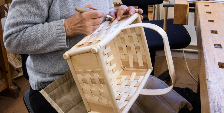 På stommens insida skär man spår med kniven i över- och underkant så att en ”varp” av furu kan fästas i spåren. Genom varpen flätar man sedan ”inslaget”, också det ofta av sälg. En grepe (handtag) tillverkas och fästs i korgens stomme genom att grepen får utgöra mittenvarpen på två av korgens sidor. Tillsammans bildar stommen och flätningen en otroligt stark och hållbar korg. Traditionellt har korgarna använts bl.a. till förning vid kalas och vid besök i kyrkan och