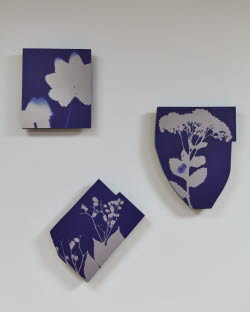 Resultatet av researchen blev verket Skuggor. Titeln hintar till de växtskuggor som fångats med cyanotypi – en tidig fotografisk metod där föremål läggs direkt på ljuskänsligt papper och exponeras i solljus. Resultatet blir vita silhuetter mot en djupt blå bakgrund.