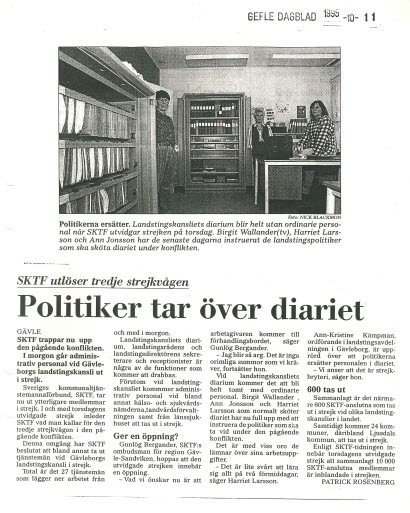 "Strejkbryteri!" svarade SKTF:s ordförande i landstingsavdelningen medan personalen i diariet med viss oro instruerade de politiker som under strejken skulle överta deras arbetsuppgifter. "Det är lite svårt att lära sig allt på två förmiddagar" sa en registrator. Enligt uppgift var såväl politiker som ordinarie personal glada när strejken var över så det datoriserade diariet kunde börja rulla som vanligt igen.