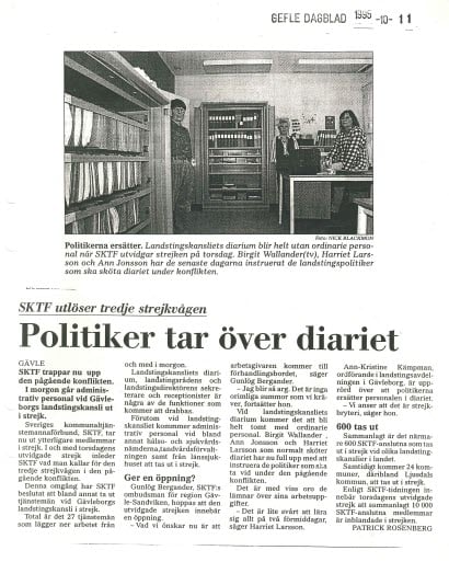 "Strejkbryteri!" svarade SKTF:s ordförande i landstingsavdelningen medan personalen i diariet med viss oro instruerade de politiker som under strejken skulle överta deras arbetsuppgifter. "Det är lite svårt att lära sig allt på två förmiddagar" sa en registrator. Enligt uppgift var såväl politiker som ordinarie personal glada när strejken var över så det datoriserade diariet kunde börja rulla som vanligt igen.