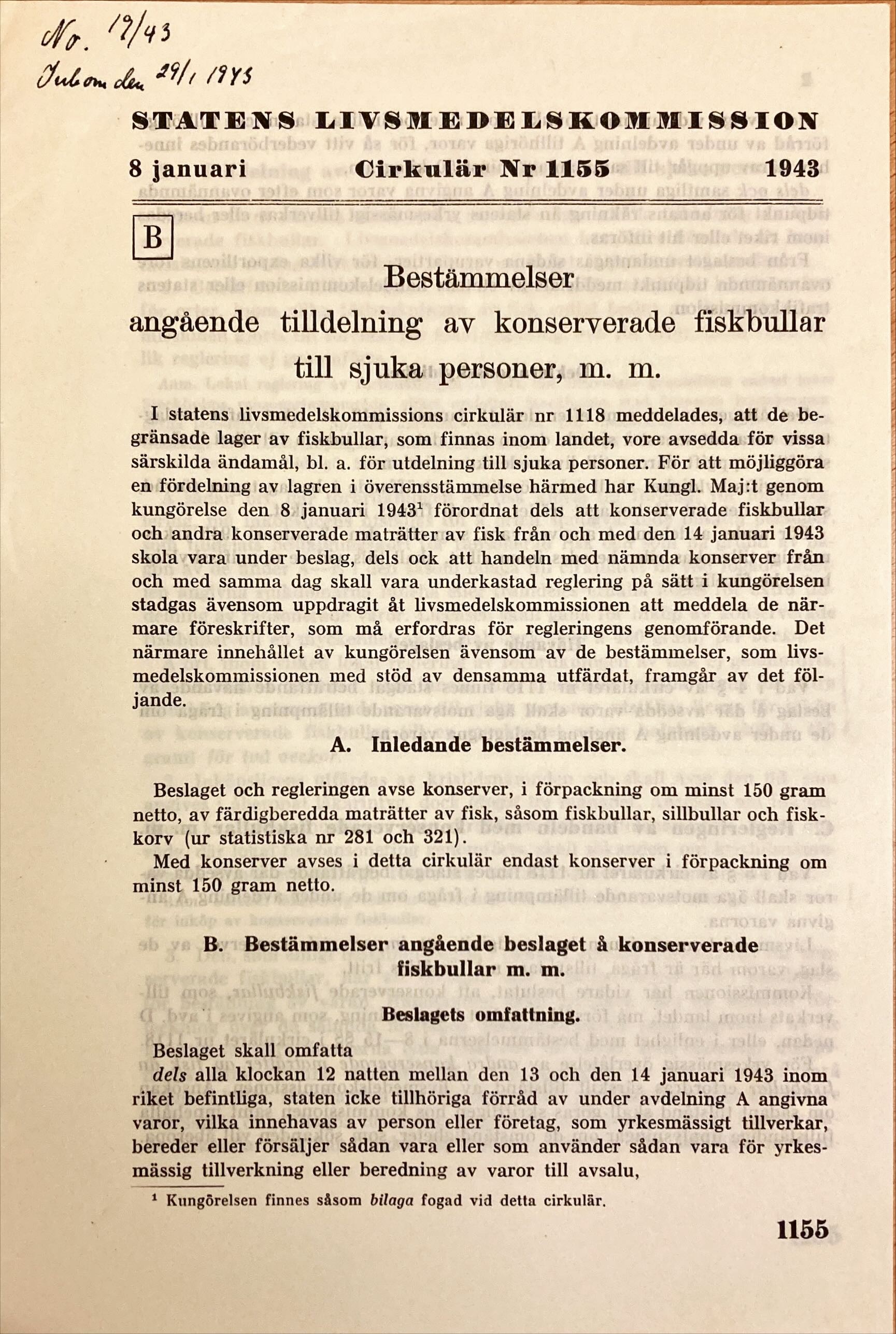 Cirkulär från Statens Livsmedelskommission, inkommet till provinsialläkaren i Kilafors år 1943. Foto: Regionarkivet
