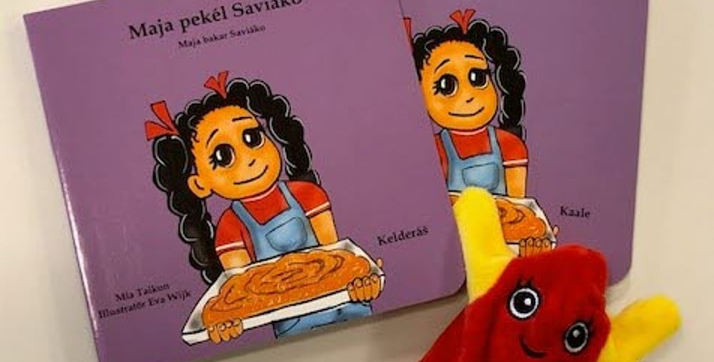 Språkpaketet på romani chib innehåller en bok, Maja bakar Saviáko (på kaale och kalderash), att läsa tillsammans med barnet, ett informationsblad om en kan hjälpa sitt barn att utveckla språket samt läskompisen Bella, som kan göra bokläsningen mer levande.