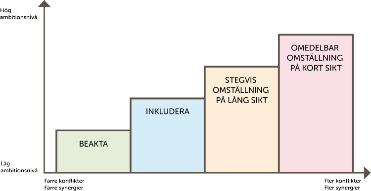 De ekonomiska, sociala och miljömässiga dimensionerna av hållbarhet är ömsesidigt beroende av varandra - de är odelbara. För att integrera hållbarhet i det regionala tillväxt- och utvecklingsarbetet måste därför alla aspekter av hållbarhet synliggöras och hanteras genom att söka positiva samband (synergier) och lyfta negativa samband (försvagningar) mellan hållbarhetsdimensionerna.