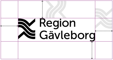 Logotypen består av två element: ordbilden Region Gävleborg och symbolen X:et. Proportionerna mellan ordbilden och symbolen får aldrig förändras, och båda delarna ska alltid vara med. Logotypen får inte ändras på något sätt - typsnitt, färger och proportioner är fasta och det är inte tillåtet att beskära, tänja, skugga eller på annat sätt förändra logotypen.