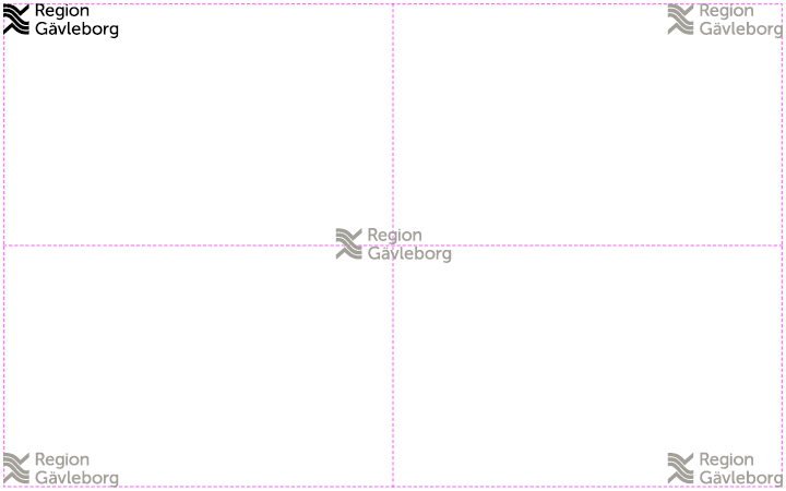 Standardplacering för logotypen är i det över vänstra hörnet, men den kan även placeras centrerat eller i de andra hörnen om innehållet kräver. Placeringen ska alltid ta hänsyn till frizonen.